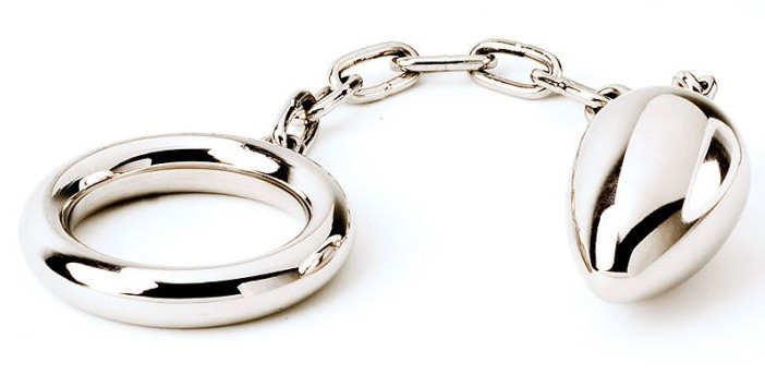 Acél péniszgyűrű anál tojással.