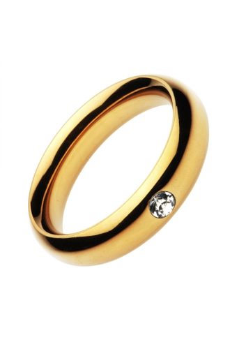 Arany színű acél péniszgyűrű-kővel díszítve.