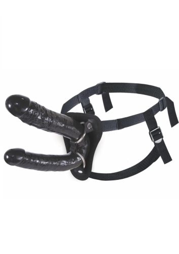 A pánt kényelmes és a csatok segítségével állítható; a mellékelt dupla dildó könnyen levehető és külön-külön is használható.