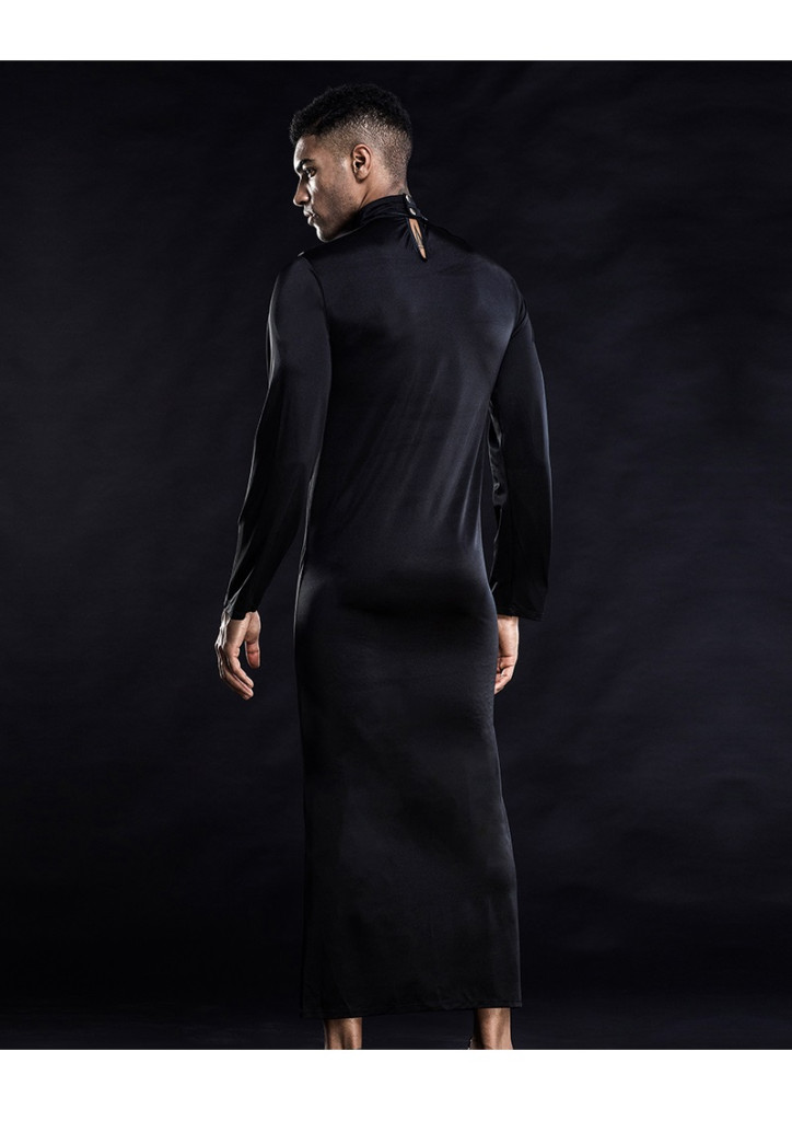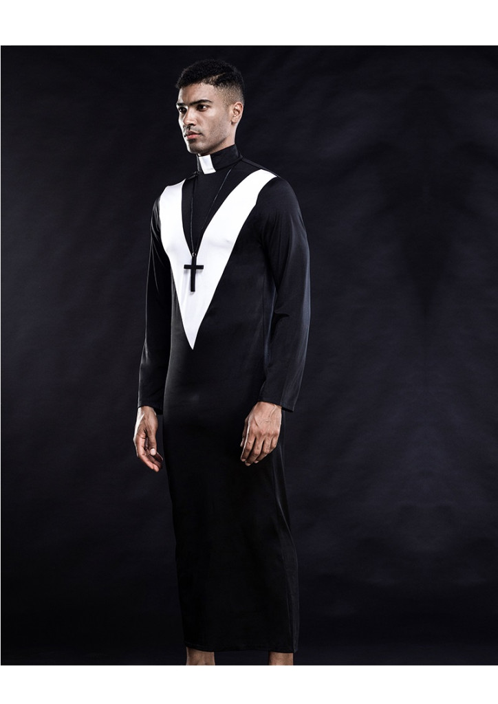 Rugalmas szatén anyagból készült papi jelmez.