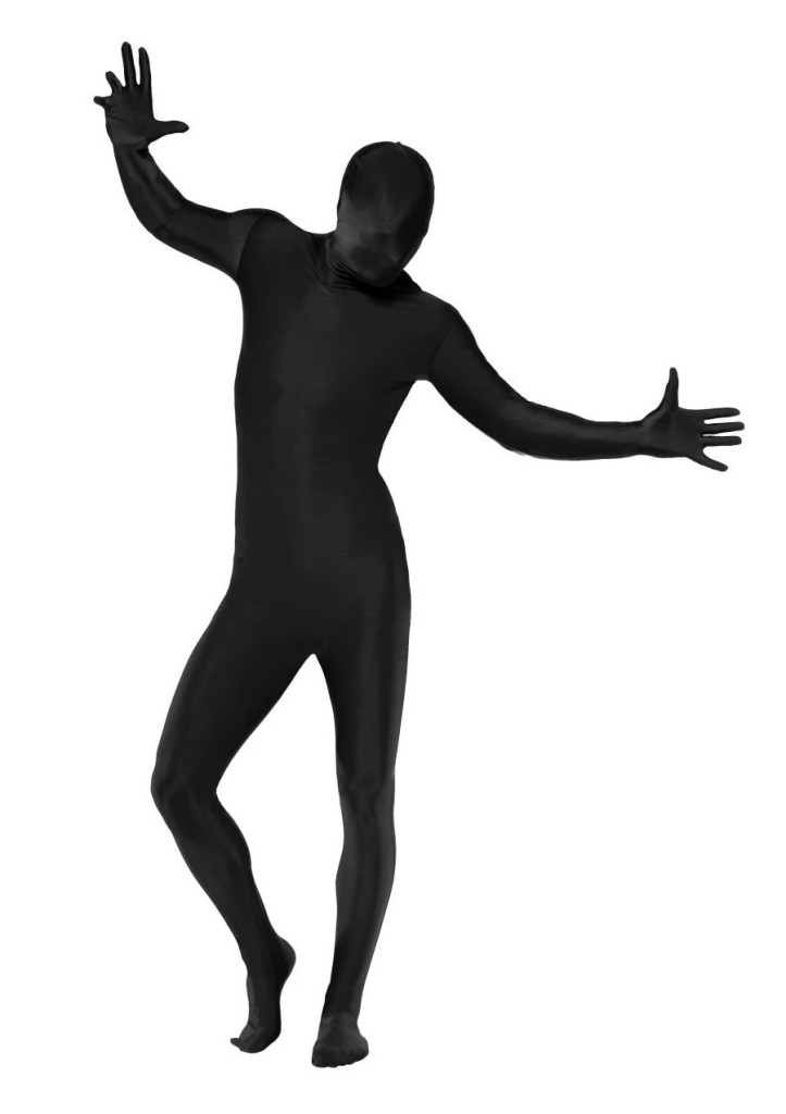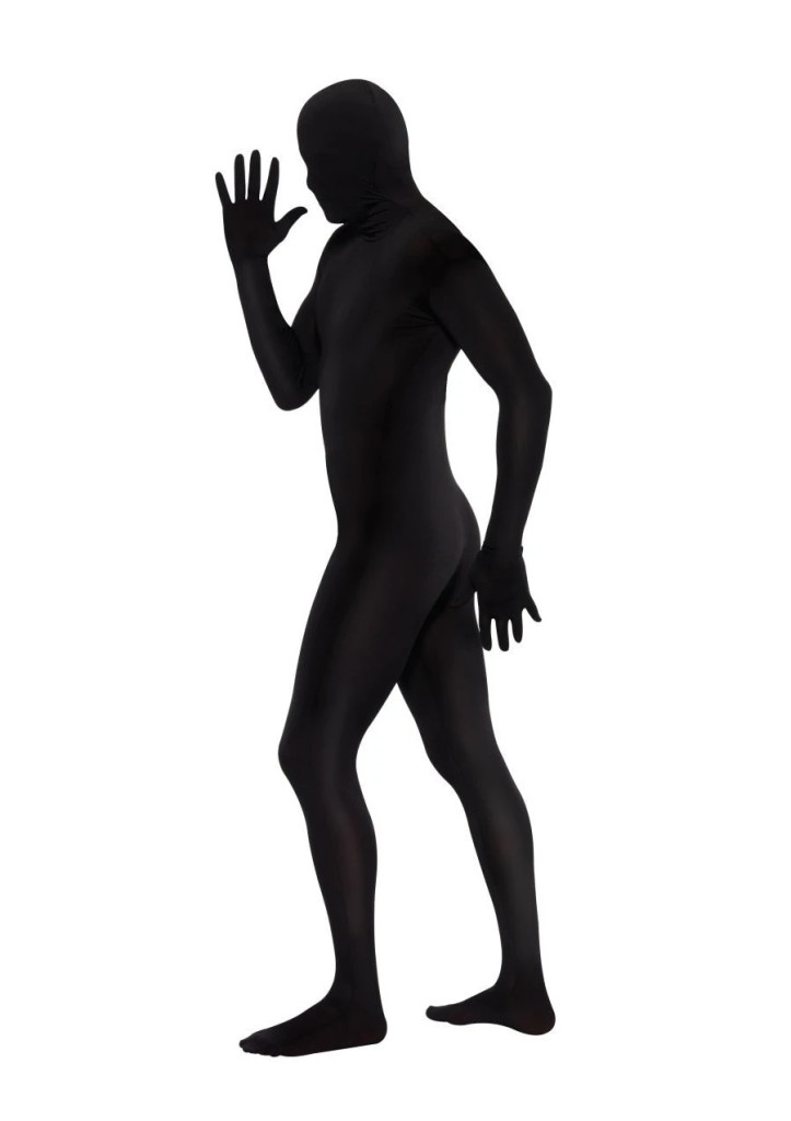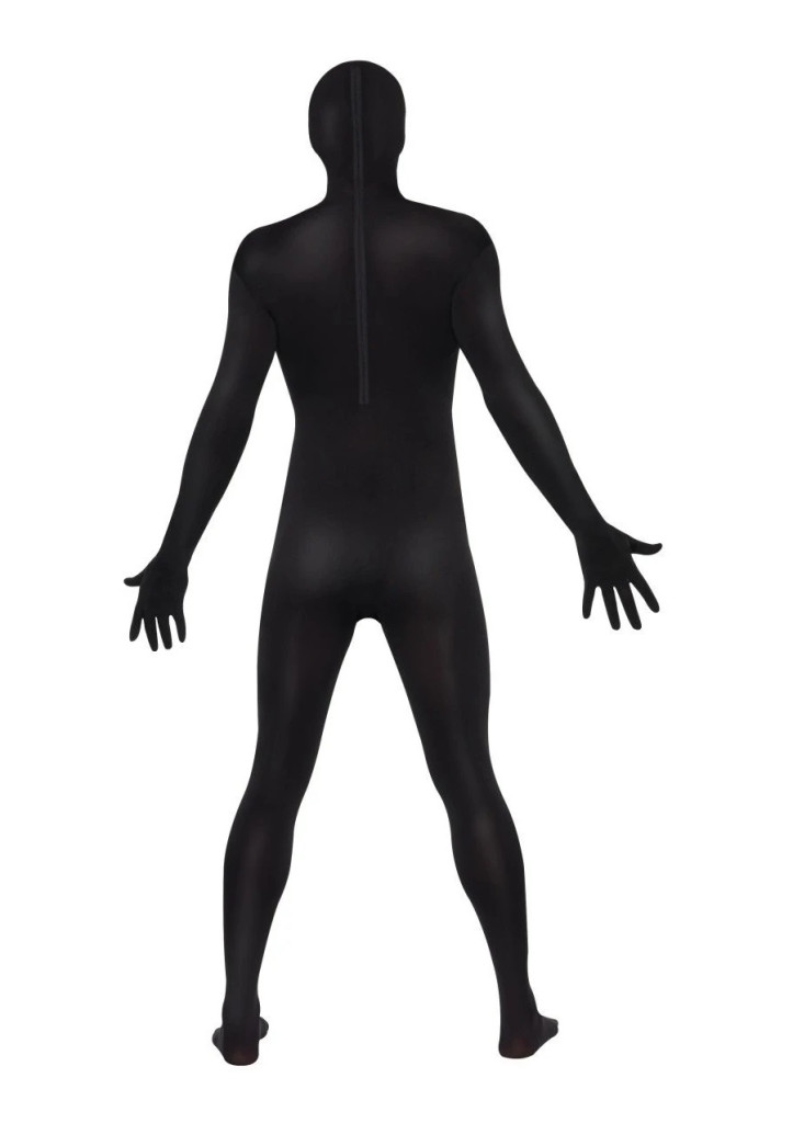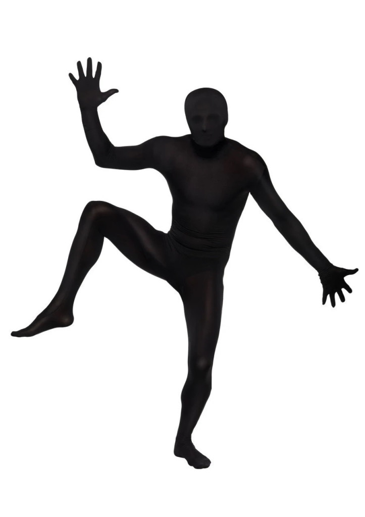 Teljes testet és a fejet is befedő rugalmas fekete ruha.