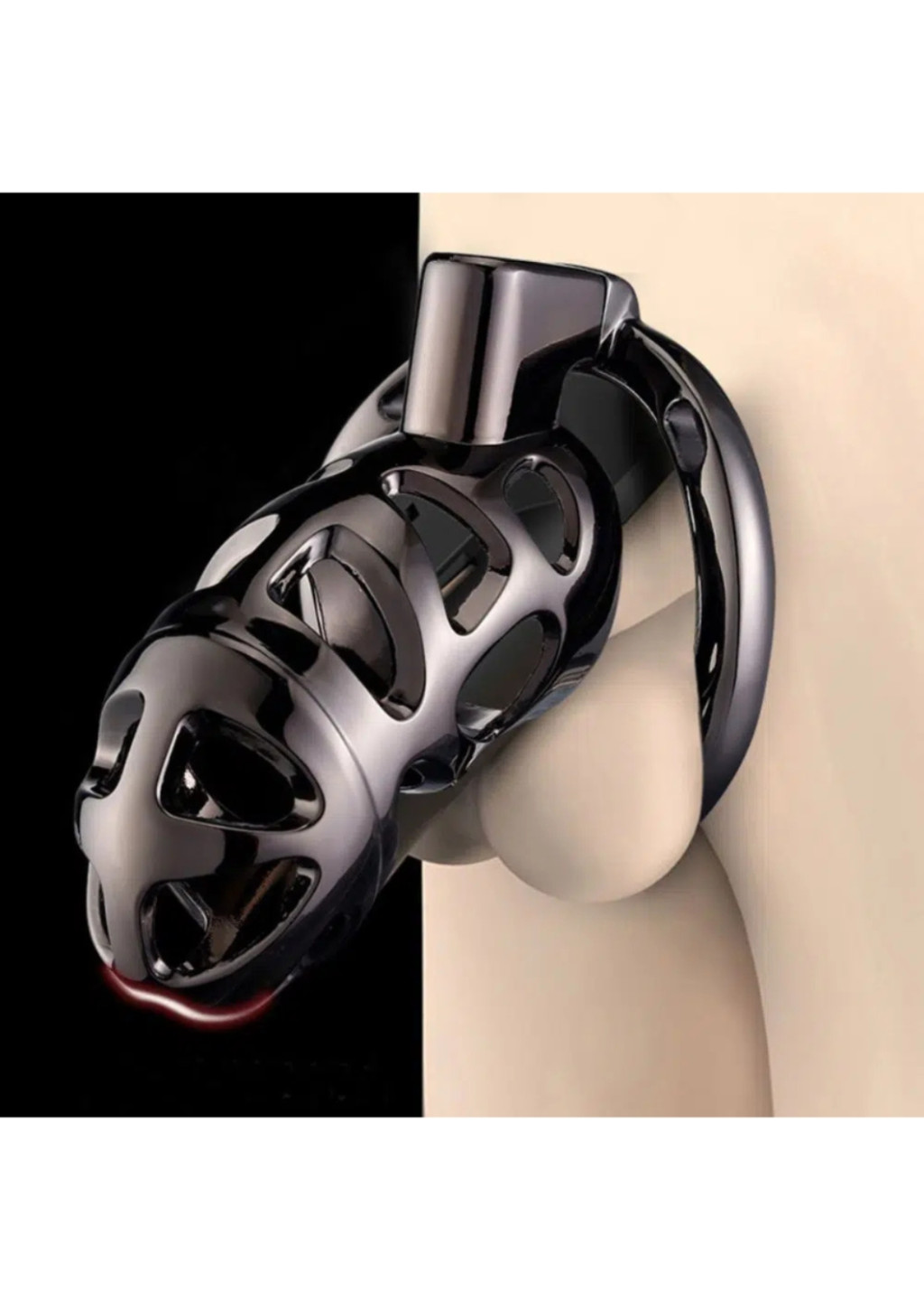 Ez a fekete rozsdamentes acélból készült erényöv ketrec rejtett felső zárral rendelkezik, amely biztonságosan rögzíti a ketrecet a gyűrűhöz – kulcs nélkül nem nyitható, mégis kényelmes viseletet biztosít. Tökéletes választás azoknak, akik hosszan tartó alávetettségi játékokat keresnek, kompromisszumok nélkül.