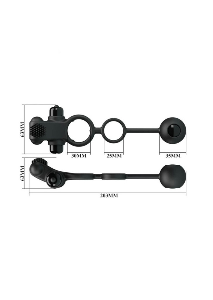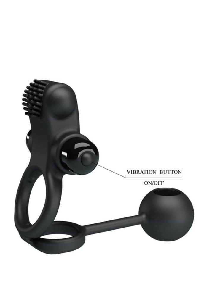 A gyűrű ki van egészítve egy kivehető vibro-golyóval ellátott klitorstimulátorral, amely gyengéden masszírozza a partner csiklóját.