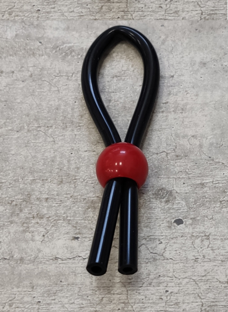 Szilikon péniszgyűrű ,állítható méretű -golyóval. A golyó piros vagy fekete színű!